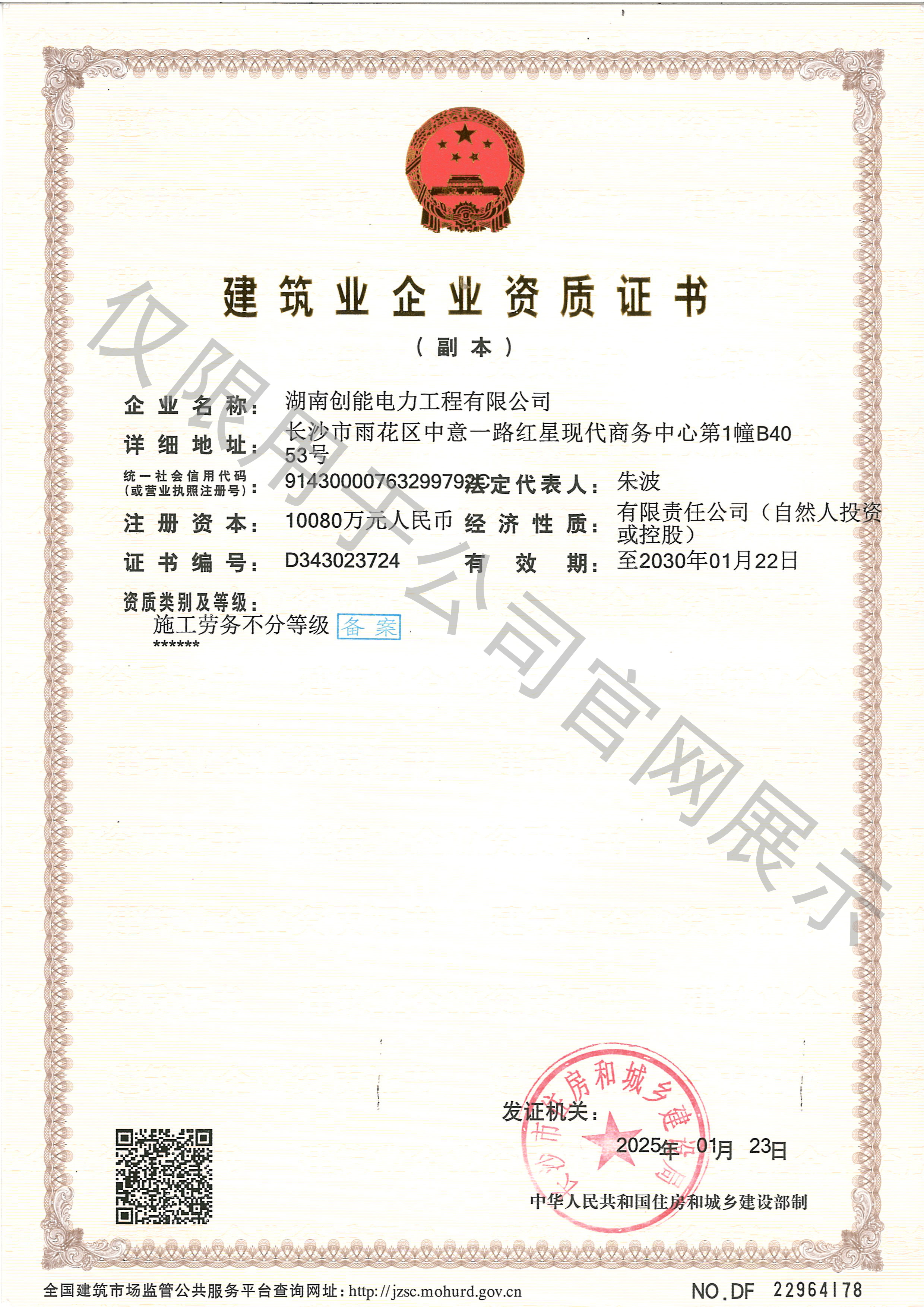 電力總包貳級、機電總包貳級、電子及智能化壹級