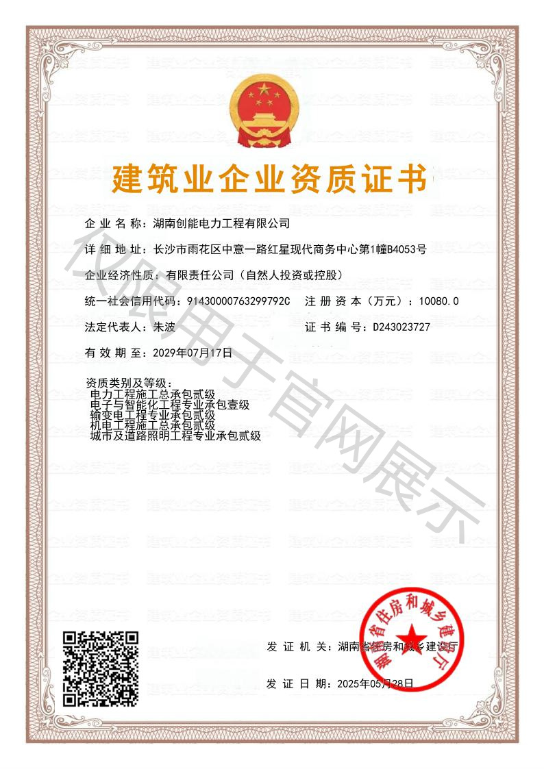 專業承包電子與智能化工程壹級、專業承包城市及道路照明工程貳級